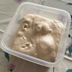 朝。 ガパオライス風。 もやしと薄揚げの味噌汁。 林檎ジャムとヨーグルト。昼。 蓬莱551の豚まん半分こ、小松菜とにんじんのナムル。数日間冷蔵庫に放置しておいたパン生地。 ぷくぷくと発酵して面白い。今回は油脂と砂糖なしで、バゲット生地の配合にしてみた。 捏ね ...